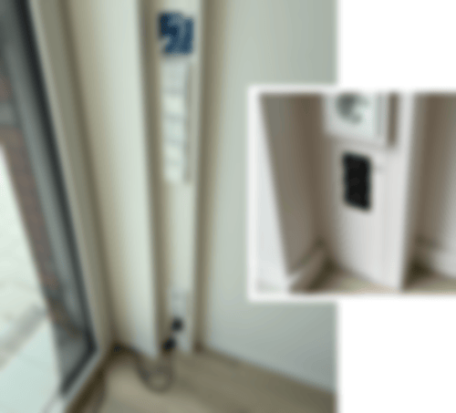 Im Technikraum liegt ein Mikrofon, dass an die obere Buchse im Bodenbereich angeschlossen werden kann. Ebenso kann hier das Rednerpult angeschlossen werden.